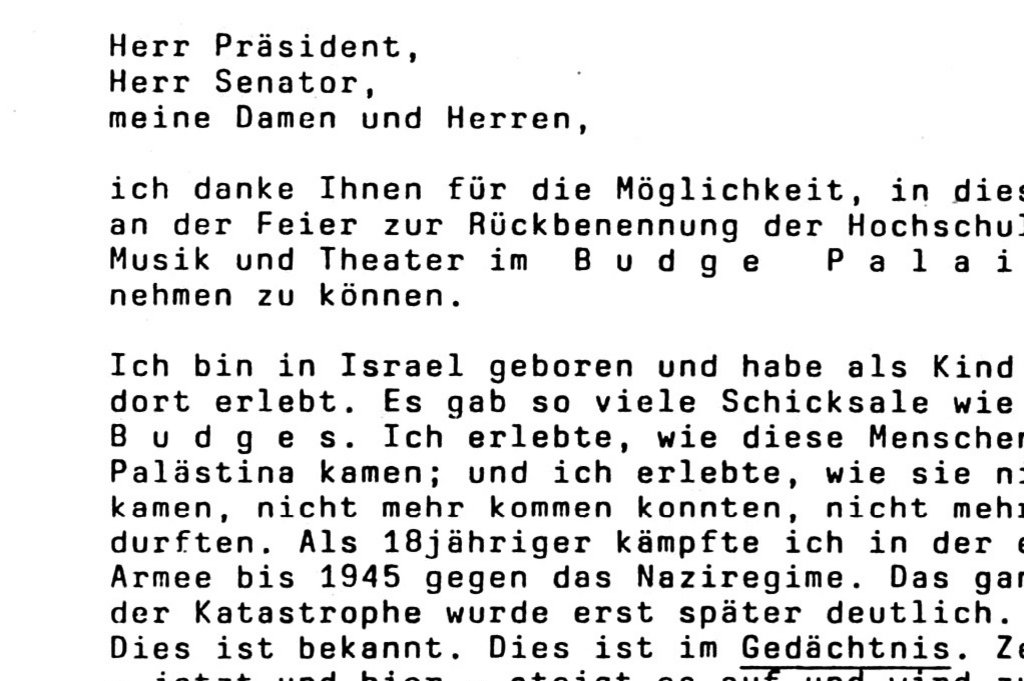 On the initiative of Professor Urte Clasing and other lecturers, this work of art was purchased by the university on the occasion of the renaming of the old building to "Budge-Palais". In his speech at the ceremony, the artist made a connection between the fate of Henry and Emma Budge's legacy and his work.