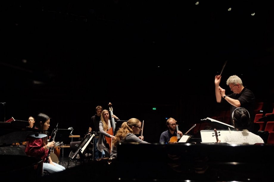 The Ensemble 13/14 is a solo ensemble of around 13-15 players who work on the repertoire of this genre once a year and present it on two evenings. One of these concerts is conducted by students of the conducting class.